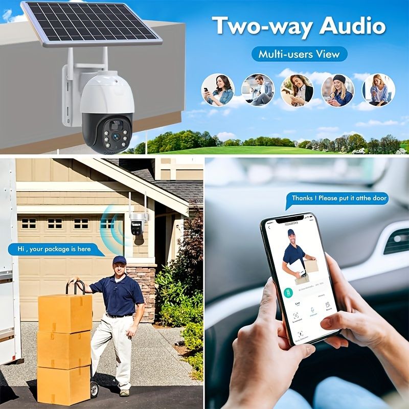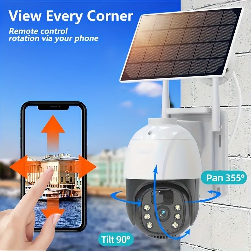 Câmera Solar Sem Fio com PTZ 360° para Exterior – Detecção de Movimento, Vídeo 2K e Noite Colorida. Inclui Alarme e Luz de Destaque, Armazenamento em Nuvem/SD, com Design Branco Superior e Preto Inferior. Ideal para monitorar sua casa, jardim ou garagem, sem fios e fácil de instalar!