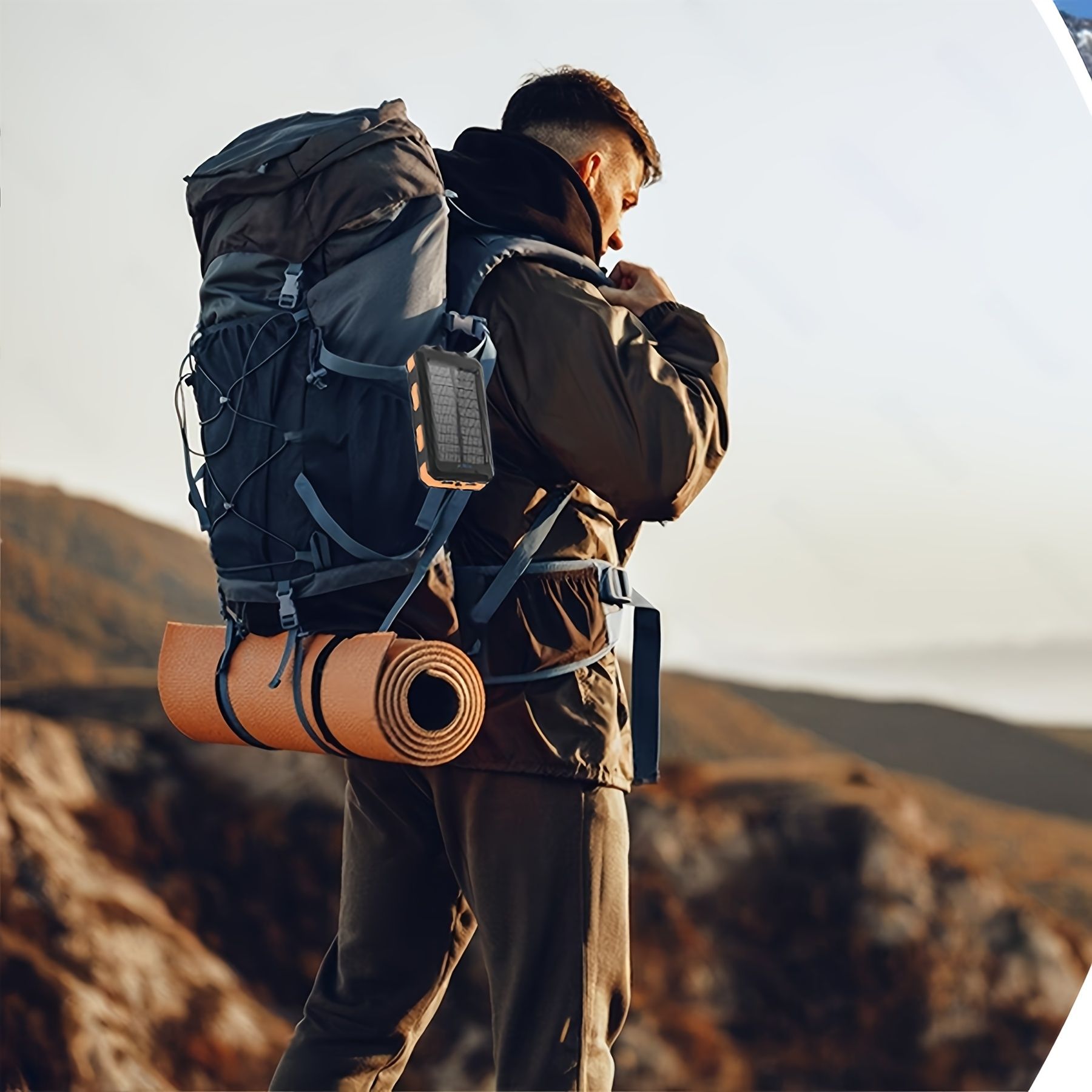 Power Bank Externo de 20.000 mAh – Funcionalidade e Conforto! Com carregamento solar, duas saídas USB de 5V, lanterna LED e bússola, é perfeito para viagens, acampamentos e uso diário com dispositivos móveis. Não perca a chance de presentear alguém com esse item útil nas festividades!