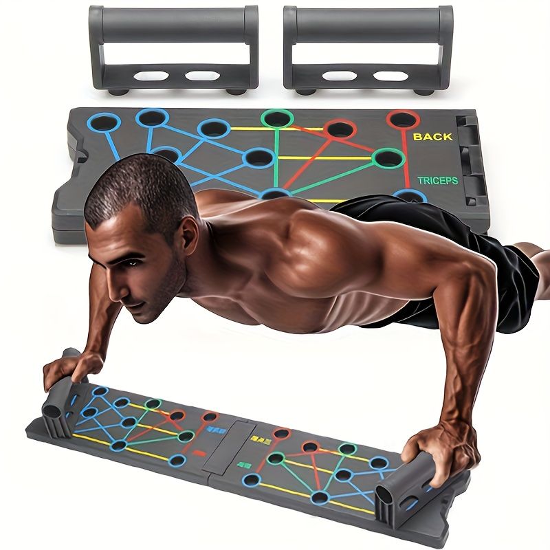 Sistema de Placa de Flexões Versátil e Ajustável - Equipamento de Ginástica para Casa, Ideal para Treinamento de Força Corporal Completo! Trabalhe seu peito, pernas e braços de forma eficaz, contando com gripes com amortecimento para maior conforto, superfície antiderrapante resistente e design compacto. Este sistema de modelagem manual em cor preta é perfeito para exercícios internos e externos, podendo ser usado todos os 365 dias do ano!