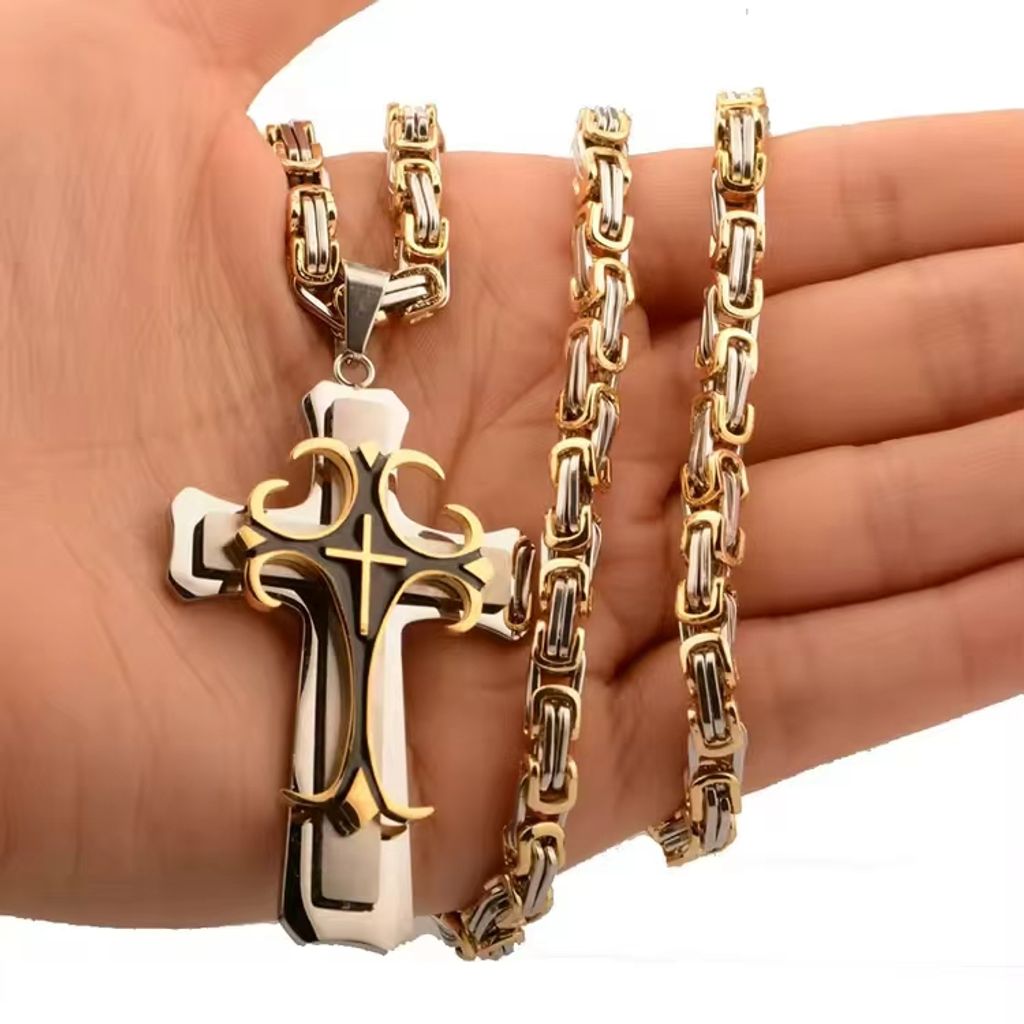 Colar de Cruz de Aço Inoxidável de Duas Camadas, Design Elegante e Durável, Ideal para Uso Diário e Presente Cristão.