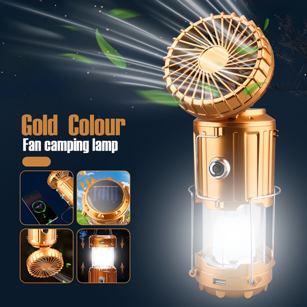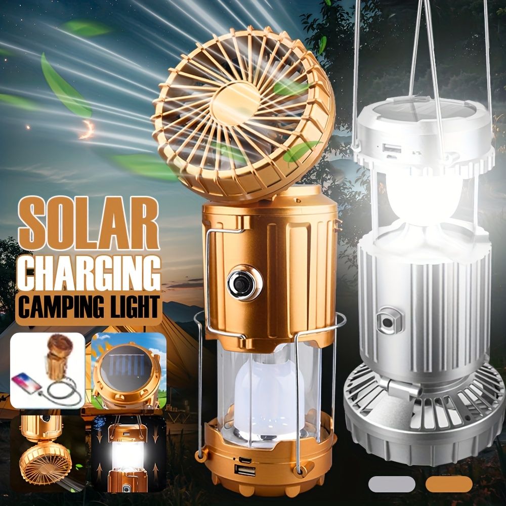 Lâmpada de Acampamento Solar Multifuncional com Ventoinha – Energia solar sustentável, iluminação brilhante e ventilação refrescante em um só produto! Ideal para acampamentos, passeios ao ar livre e emergências. Carregamento solar rápido, uso prolongado. Não perca!