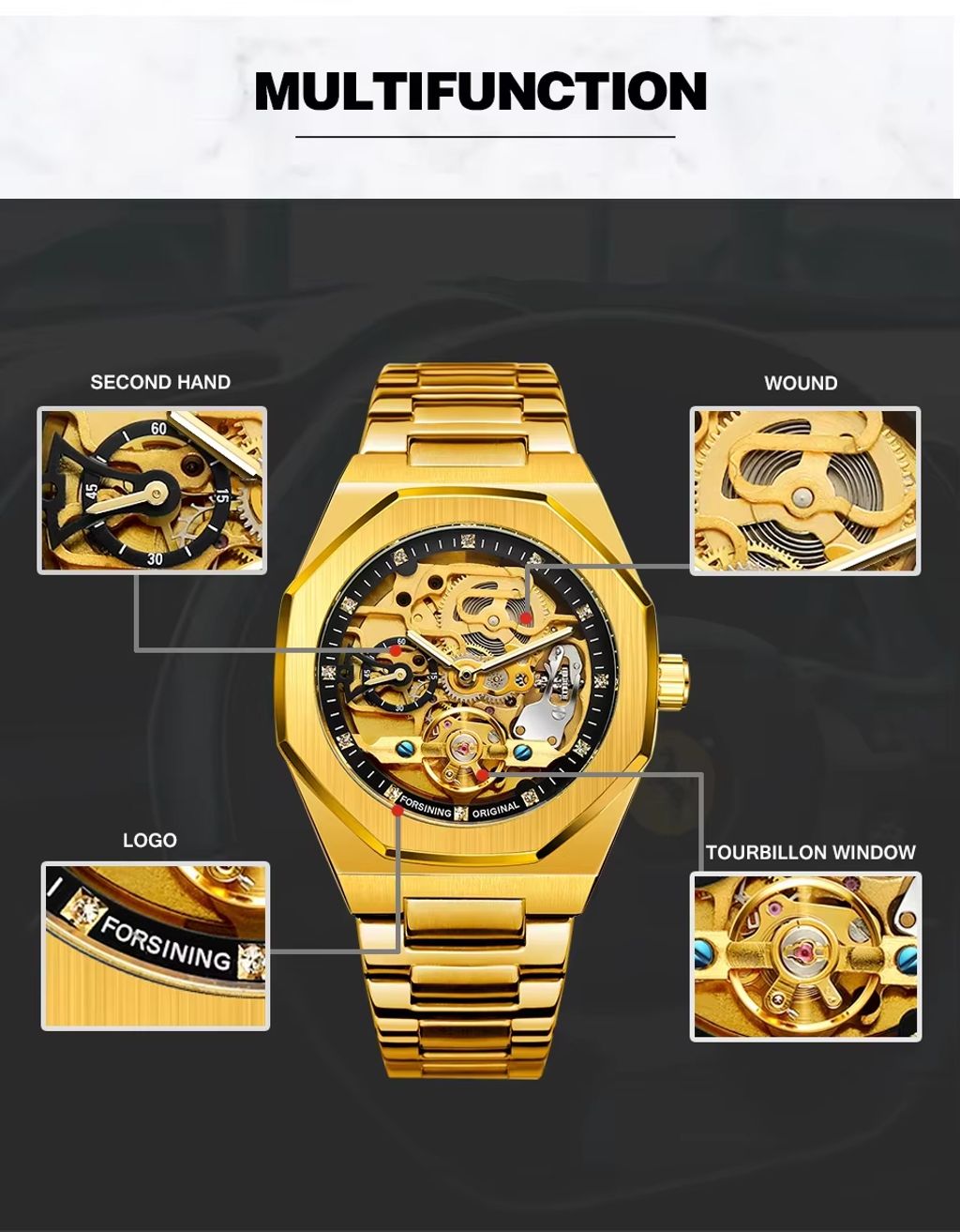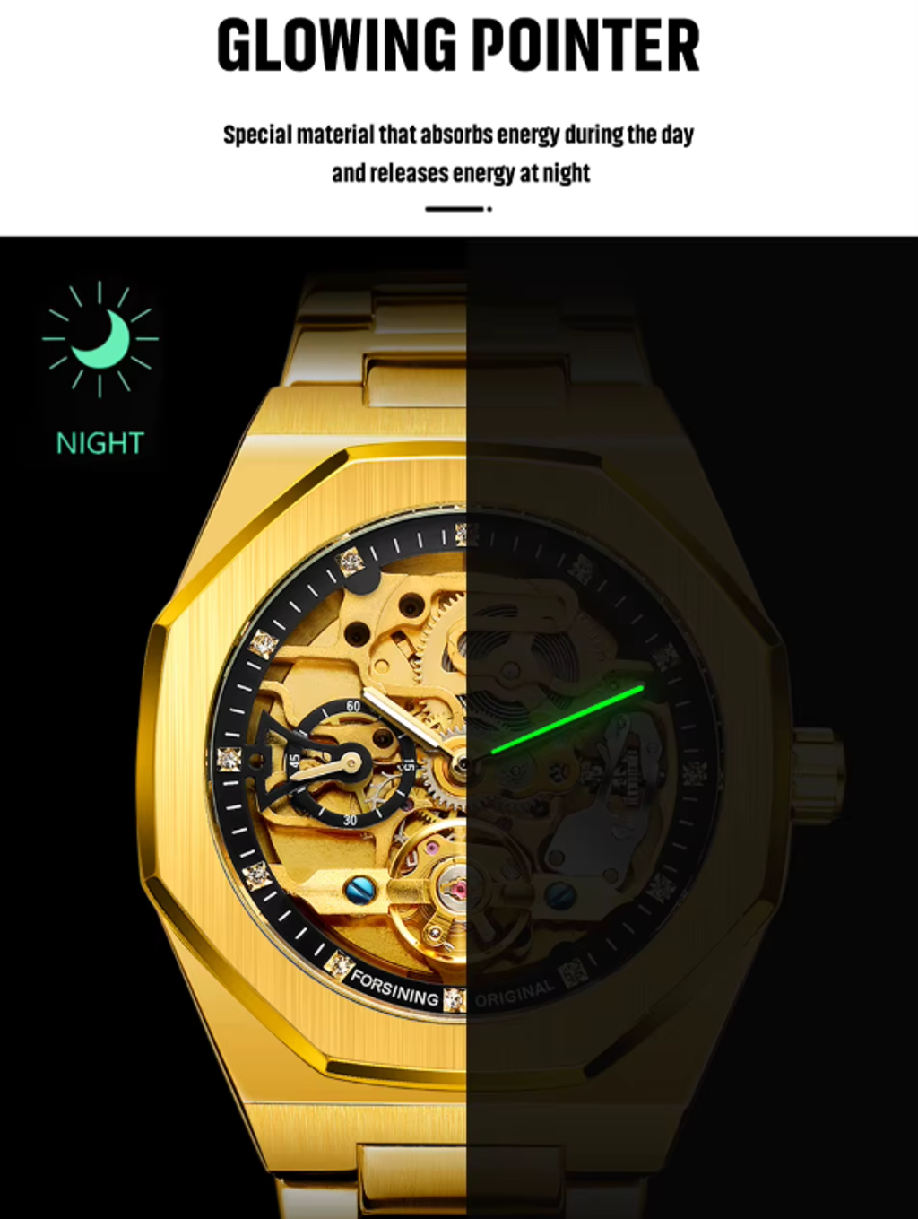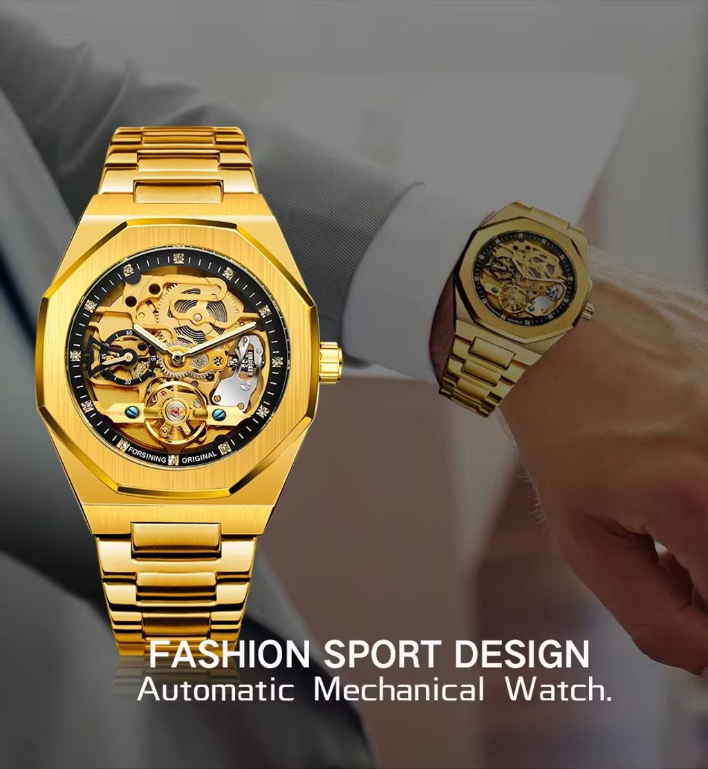 Cada detalhe deste relógio foi pensado para oferecer excelência: a caixa poligonal com acabamento de alta qualidade, a pulseira de aço prateada-preta ajustável (para maior conforto) e os marcadores minimalistas que transmitem elegância discreta. O movimento automático de precisão faz dele um acessório que combina durabilidade e estilo, ideal para homens com bom gosto.